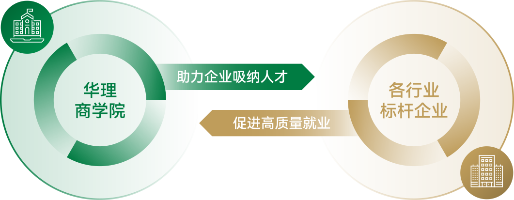 为充分发挥校企双发的优势,推动产学研深度融合,向企业输送智力资源和科创人才,与企业共享商学院教育的丰硕成果,华理商学院以“连结商业与科技,培养知行合一的经管人才”为使命,已与40余家不同行业的头部企业紧密合作,开展价值共创项目,在此基础上共建产教融合基地,校企双方协同育人、共促教育链、人才链、产业链与创新链的深度链接,为学生提供全方位职业发展支持,包括知识、人脉和机会等,量身打造个性化的职业发展规划,以助力学生在职场中的持续发展。