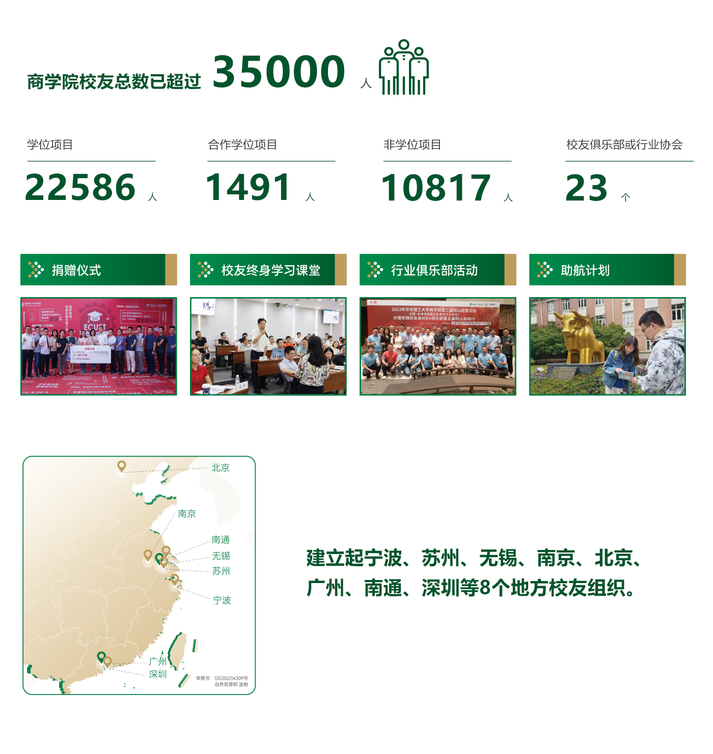 华东理工大学商学院秉承“基于交流而发展”的全过程培养理念,致力于打造专业知识交流、管理经验交流、社会网络建构三大交流平台。为学生提供优质的教育资源,让教师与学生之间、学生与学生之间相互交流,并共创知识,通过“知行合一”讲坛、企业课堂等让来自于不同行业不同企业的高管与学生之间、学生与学生之间分享各自的经营管理经验;打造高层次的社会网络关系整合平台,通过各种俱乐部、职业导师、猎头平台等让学生能够结交行业内上下游不同领域的同学、校友、战略合作伙伴,使MBA学生从知识获取到能力发展、从技能提升到理念创新、从学历提升到职业发展,全面提升学生个人的社会资本。